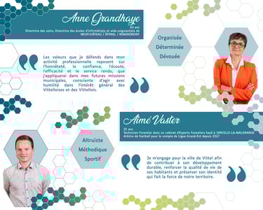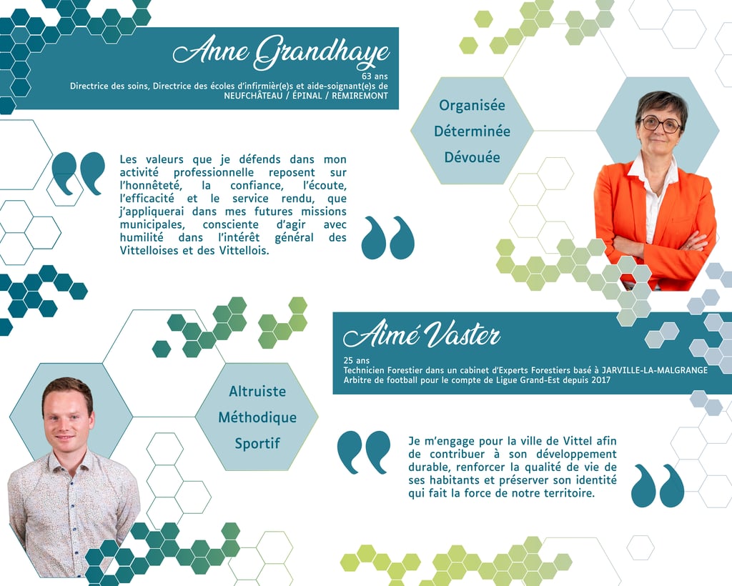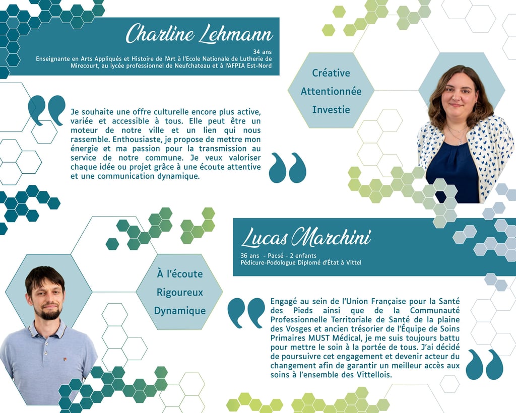 Fidèles à leurs valeurs d’écoute, de proximité et d’action, ils défendent une vision de Vittel tournée vers l’avenir, fondée sur le dialogue, l’innovation et la vitalité locale.